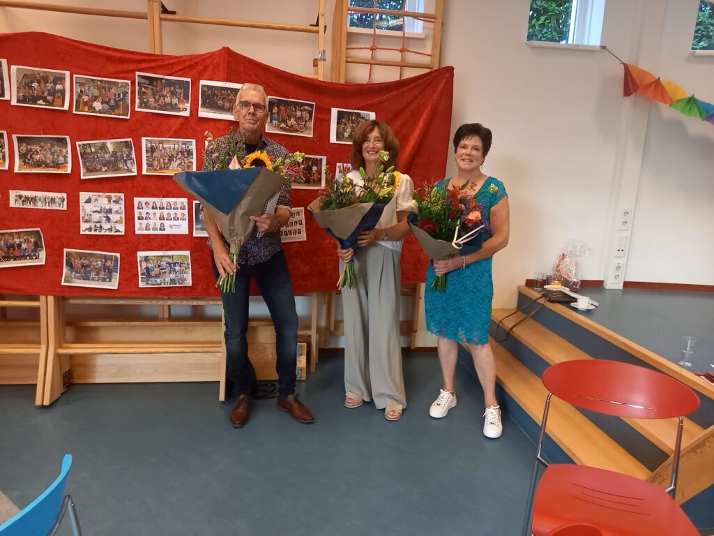 Voor de zomer nam de school afscheid van drie toppers van een leerkrachten. Meester Roel, juf Angelique en juf Gertrude staan niet meer voor de klas. We missen hun expertise en aanwezigheid in de school.